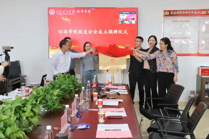 大会表决通过了《山东女子学院经济学院校友分会会员代表建议名单》。校友代表焦光磊致辞,他表示,经济学院校友分会的成立为各届校友提供了一个开放的平台,是校友分享成功与喜悦,传递友情和价值的精神家园,又是校友联系母校、回馈母校的感情纽带,全体校友定当同心协力,共创母校美好的未来。不能返校在线上参会的校友们纷纷从“云”端发来祝贺视频。学校合作发展处处长于子云、教务处副处长田玉丽、经济学院院长沈传河、副院长崔俊富及校友代表焦光磊、李君共同为“山东女子学院经济学院校友分会”揭牌。