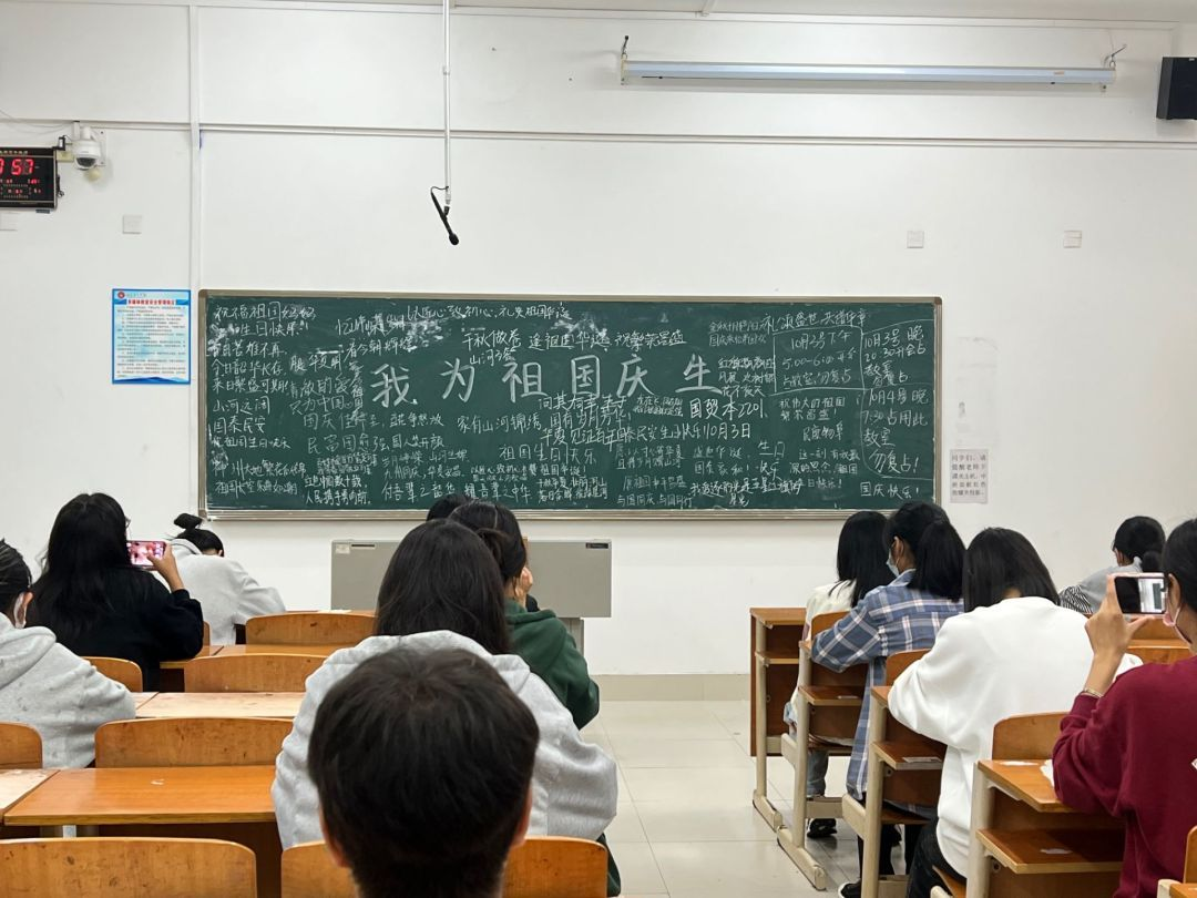 何其有幸,生于华夏,生于盛世。在国庆假期中,经济学院组织了“我为祖国庆生”活动。在活动中,同学们学习了国庆节的来源以及庆祝的意义,一起重温了中华人民共和国的发展历史。我们以手写心,在黑板上留下了来自内心深处对祖国最忠诚的祝福。