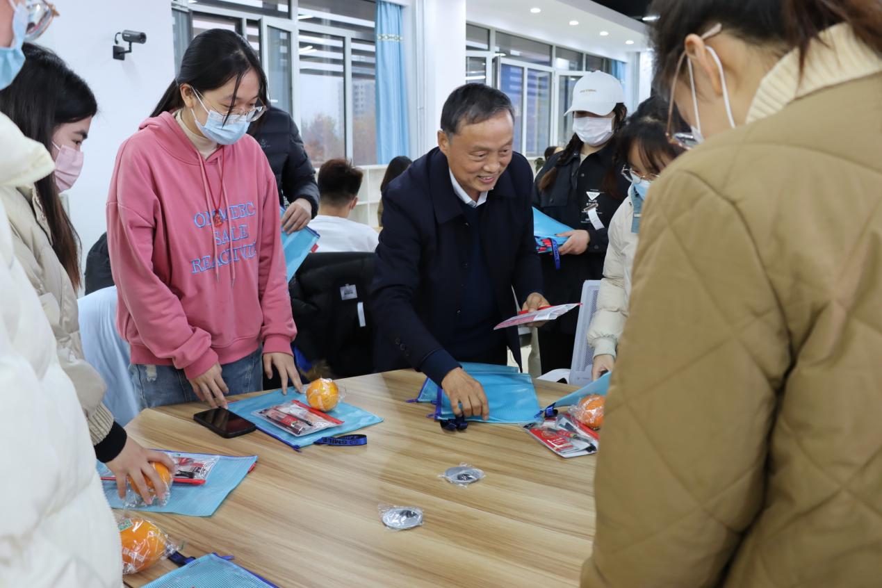 考研之路,学院与大家同舟共济。与会嘉宾和领导老师们为考研学子们送上了“暖心大礼包”----文具袋、尺子、涂卡笔和橙子等考研暖心礼品,寓意考研学子们心想事成,金榜题名,成功上岸。会后,辅导员和学生干部们到图书馆、教室为没来得及到现场参加活动的考研学子送去了“暖心大礼包”。这些礼物蕴含了学院全体领导和老师对同学们美好的期待与温馨的鼓励。考研学子们纷纷表示,一定会以最好的状态迎接考试,以优异的成绩回报学院。