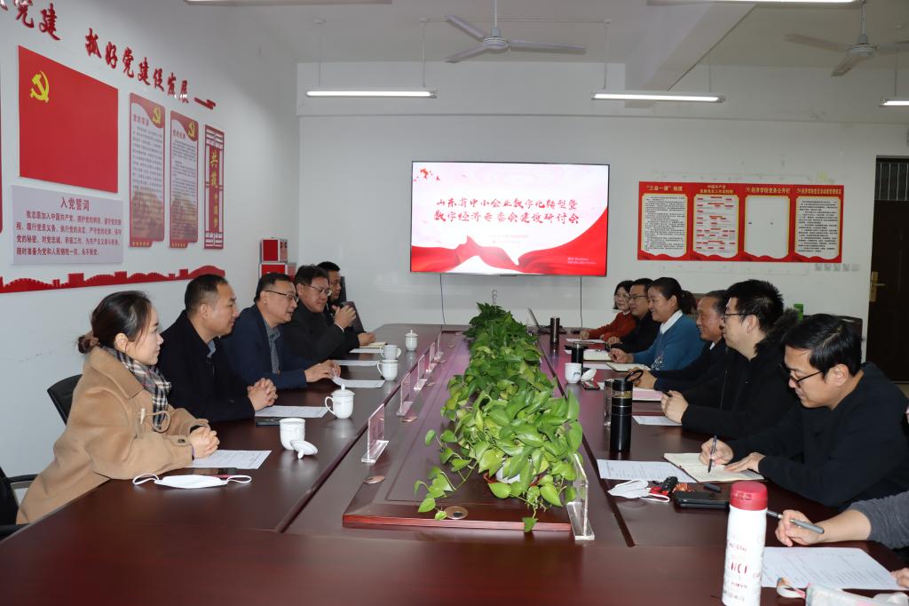 1月12日下午,为充分发挥经济学院数字经济教师团队作用,山东省中小企业协会数字经济专委会在我院会议室举办“山东省中小企业数字化转型暨数字经济专委会建设研谈会,就数字化助力中小企业发展、政策解读、政府智库,以及专委会平台如何更好发挥作用进行了深入研讨。山东省轻工集体企业联社企业服务部(省中小企业发展促进中心)处长伊继文、副处长徐涛、山东省中小企业协会新能源汽车专委会会长张军、经济学院班子成员、学院数字经济教师团队代表等参加了会议。