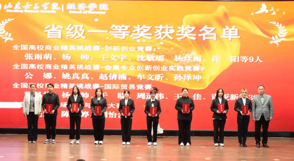 会上,校长李光红发表讲话。她首先代表学校向在2022年度学科竞赛中获奖的同学表示祝贺,向在各类学科竞赛中辛勤付出的老师们表示感谢。充分肯定了经济学院近年来取得的优异成绩,对新一年学科竞赛工作提出三点希望。一是切实提高政治站位,将办好学科竞赛作为有效提升人才培养水平,落实新时代人才强省战略的重要举措。做好各项竞赛的组织筹备工作,营造科教协同育人环境,形成“以赛促学,学赛结合”的良好学生科研活动氛围;二是希望更多老师借助学科竞赛平台,发挥学术专长,做好参赛学生的指导工作,向更高级别的赛事发起冲击,助力学校内涵式发展、特色发展、高质量发展;三是希望同学们秉持创新精神,敢于拥抱挑战,积极参加学科竞赛培养竞争意识、责任意识和创新意识,在各类比赛中增长专业知识,开拓专业视野,提升学习能力,努力成长为知识型、创新型、复合型的新时代人才。
