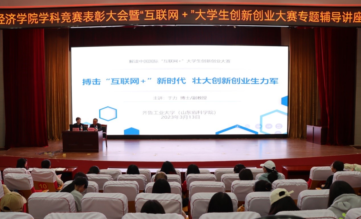 4月13日,经济学院在图书馆二楼报告厅举办2022年度学科竞赛表彰大会暨“互联网+”大学生创新创业大赛专题辅导讲座。学校党委副书记、院长李光红出席表彰大会,教务处处长穆勇、学生工作部(处)处长任晓剑、团委书记苏婧、创新创业学院党总支书记、院长李厚忠、经济学院领导班子成员及部分师生代表参加大会。本次活动还邀请了齐鲁工业大学管理学院副教授于力作“互联网+”专题辅导讲座。会议由经济学院院长沈传河主持。