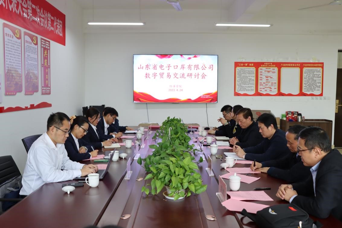 为了促进产学研深度合作,提升本地区对外开放水平,促进数字贸易产业发展,解决本地区数字贸易人才缺乏问题,围绕数字贸易人才培训基地建设、相关课题的研究和研讨、数字贸易人才培养、校企合作实习实践基地建设等方面的内容,2023年4月24日下午,省属国有企业——山东省电子口岸有限公司应邀参加由经济学院承办的数字贸易交流研讨会。