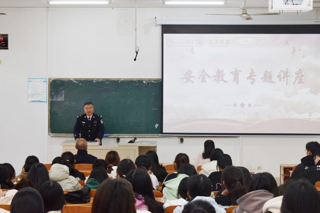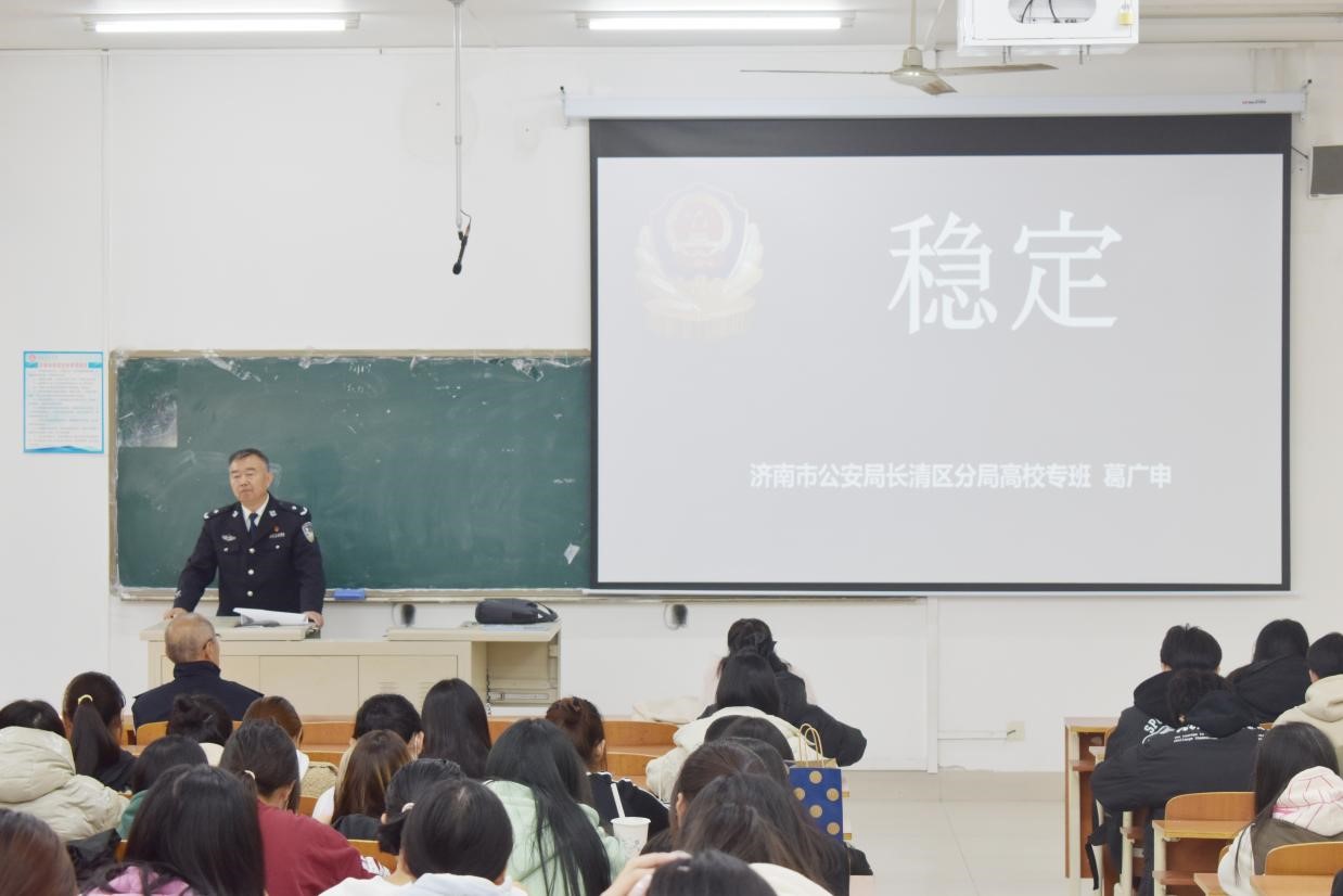 为进一步提高同学们的安全防范与自我保护意识,增强对各类安全案件、事故的识别应对能力,11月9日,经济学院组织开展新生安全教育活动。邀请济南市公安局长清分局高校专班负责人、一级高级警长葛广申为2023级新生做安全教育专题讲座。