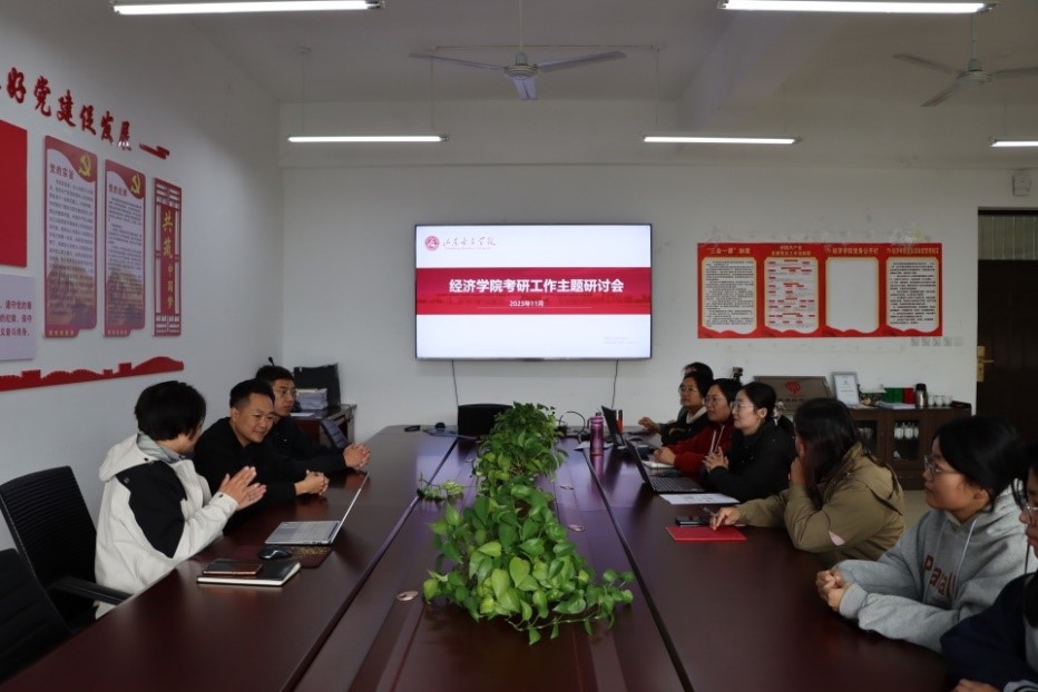 为推动学院考研工作,更加精准地助力考研学生,经济学院于11月9日上午在求真楼202会议室举办考研工作主题研讨会,邀请到高联教育指导专家高远亮和王荣恒两位老师,共同研讨考研指导相关工作。会议由经济学院党总支书记齐振花主持,党总支副书记赵晓琳、国贸教研室主任郭华、考研导师刘翠翠、张欣欣、王玉平、徐晓通和就业联络员张梦瑶老师及经济学院部分考研学子代表参加会议。