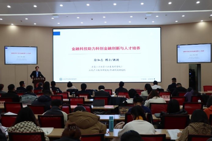 济南基金业协会会长、济南科创金融学会执行会长高东、山东社会科学院财政金融研究所所长、二级研究员张文、齐鲁工业大学(山东省科学院)教授、山东产研金融科技研究院院长徐如志分别发表题为《科创金融要素体系与创业投资》、《科创金融支持山东绿色低碳高质量发展》、《科创金融模式与产教融合人才培养路径》的主题报告。