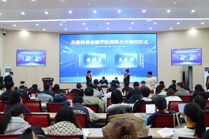 经济学院院长沈传河教授围绕学院开展科创金融人才培养的具体举措、课程体系建设以及依托高质量平台开展科研与社会服务等方面进行了主旨发言。随后,学校、山东金融业联合会和山东产研金融科技研究院共同举行了科创金融人才培养基地的揭牌仪式、共建科创金融学院战略合作签约仪式以及科创金融协同创新与人才培养平台的启动仪式。