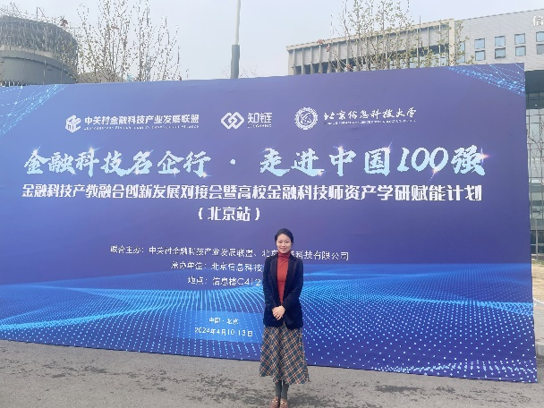 近日,由中关村金融科技产业发展联盟与北京知链科技有限公司联合主办、北京信息科技大学承办的“金融科技产教融合创新发展对接会暨高校金融科技师资产学研赋能计划”在京召开。我院金融学教研室教师代表赵晓娟应邀参加了此次会议。本次会议旨在深化金融科技领域的产教融合,推动高校金融科技师资的研究与实践,促进金融科技教育的创新与发展。