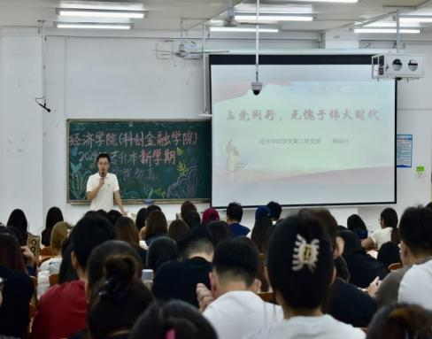 为深入学习贯彻落实习近平新时代中国特色社会主义思想和党的二十大精神,认真抓好新生入党启蒙教育,引导新生听党话跟党走,2024年9月6日,经济学院党总支开展“与党同行,无愧于伟大时代”2024级新生专题系列党课。