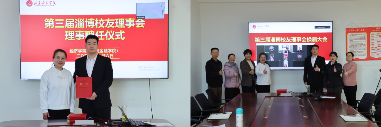 为做好“凝聚校友、组织校友、服务校友”工作,经济学院于2025年1月6日在求真楼202会议室成功举办了淄博校友理事会换届大会暨校友交流会。山东女子学院校友办主任吕梅,院党委书记齐振花、院长沈传河、党委副书记赵晓琳、第三届淄博校友理事会成员及校友会工作人员参加会议。