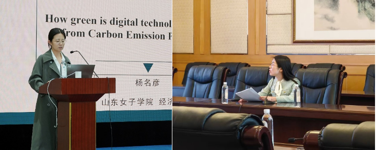六大平行论坛聚焦绿色金融与可持续发展、ESG与企业社会责任、能源转型与金融支持、海洋经济与生态保护、数字化与绿色创新、气候风险与金融稳定等前沿议题。经济学院院长沈传河主持数字化与绿色创新论坛,青年教师杨名彦、刘璇、徐喆及硕士生潘文静、相璐倩分别在绿色金融与可持续发展论坛、海洋经济与生态保护论坛、气候风险与金融稳定论坛、数字化与绿色创新论坛报告研究成果,并与参会学者展开深入交流。