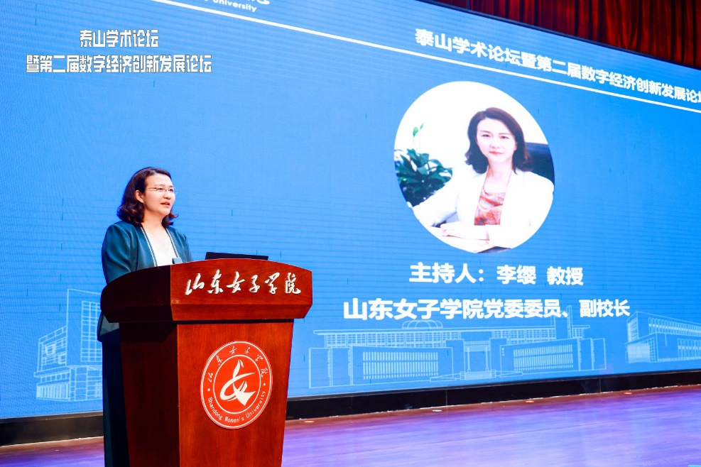 论坛开幕式由山东女子学院党委委员、副校长李缨教授主持。山东女子学院党委副书记、校长李光红教授,山东省数字经济学会理事长陈月辉教授分别致辞。李光红校长以一首诗词祝贺山东省数字经济学会成立及泰山学术论坛胜利召开,期待大会的召开能够更好地推动学校数字经济学科建设快速发展。陈月辉教授代表山东省数字经济学会,对学会成立后的首次学术论坛寄予厚望,希望大会在引领全省数字经济专业人才培养和社会实践服务方面作出贡献。
