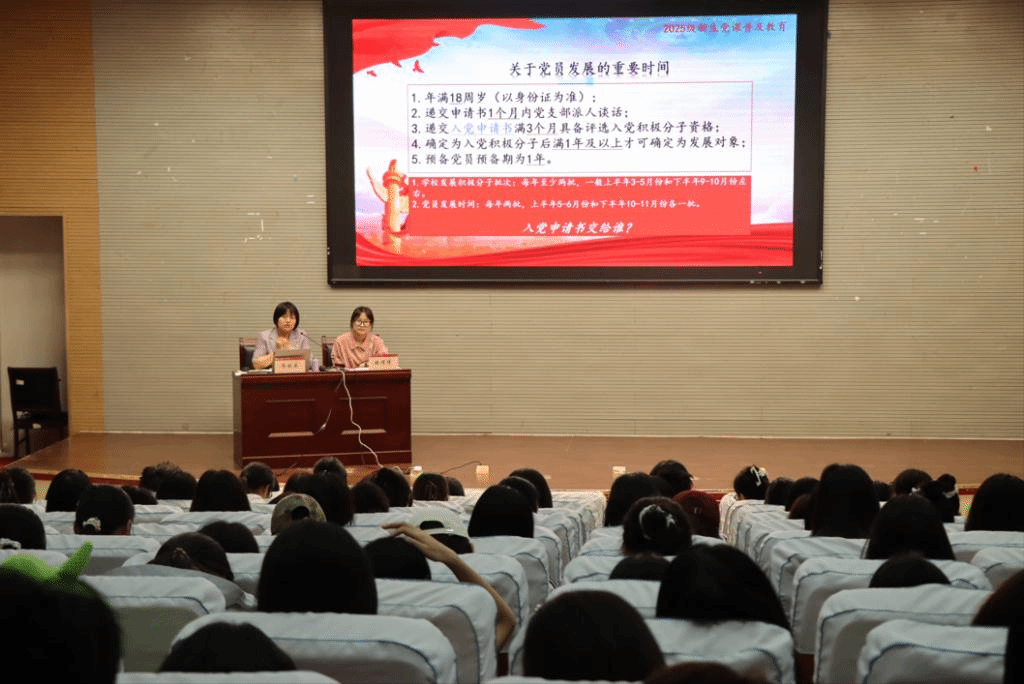随后,她围绕新时代党员发展的各项要求,从申请入党的基本条件、发展党员的工作流程以及重要注意事项等方面作了系统阐释。结合《中国共产党发展党员工作细则》,齐振花重点强调了党组织对青年学生在思想觉悟、学业水平、实践能力等多方面的具体要求,使同学们对入党过程有了更加清晰、全面的认识。