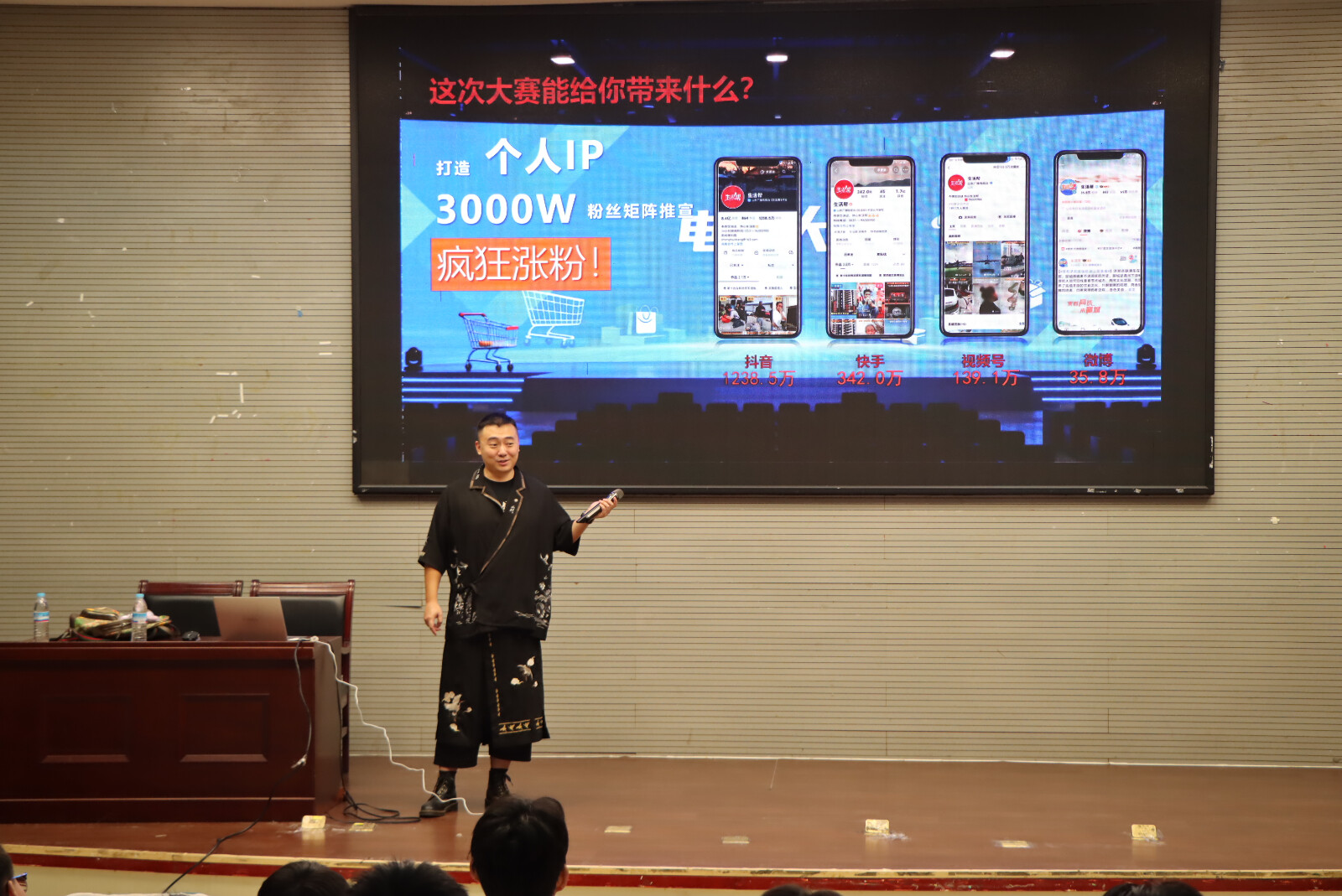 讲座中,李旸霖结合自己的一线实战经验,首先围绕着直播电商行业的发展动态与人才需求为同学们展开分析,生动讲解了在数字经济时代下,如何将课堂上的理论知识“无缝衔接”到真实操作中。随后,他分享个人成长经验,鼓励同学们珍惜在校期间“低试错成本”的优势,主动参与各类实践活动,在实操中锤炼解决实际问题的能力。他介绍了2025年“山东供销·溯源好品”直播带货大赛等实践平台,为学生们提供实践渠道参考。该专题讲座帮助学生们明确了实践能力提升的具体方向,进一步提升了他们对行业实践场景的认知。