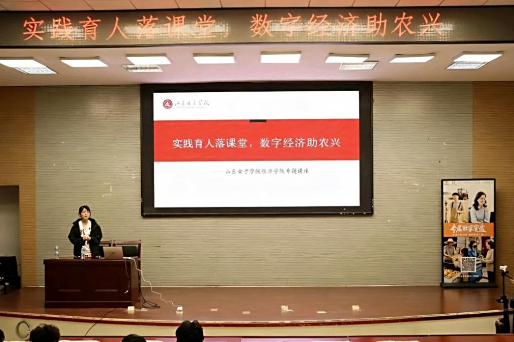 为深化实践育人成效,将理论教学与行业实践紧密衔接,切实提升学生专业应用能力。2025年9月18日下午,山东女子学院经济学院在图书馆第一报告厅成功举办“实践育人落课堂,数字经济助农兴”专题讲座。本次讲座由经济学院辅导员戴晓艺主持,特邀山东广播电视台生活频道农科管理运营中心团支部书记李旸霖主讲。