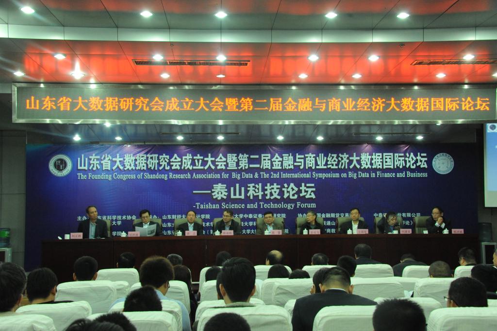 由山东省科学技术协会、山东大学、山东财经大学、山东女子学院主办,山东财经大学统计学院、山东大学中泰证券金融研究院、山东女子学院信息技术学院、山东财经大学科研处、山东省大数据研究会(筹)和山东财经大学大数据与指数研究院承办的山东省大数据研究会成立大会暨第二届金融与商业经济大数据国际论坛—泰山科技论坛于10月12日至10月13日召开并取得圆满成功。我校副校长刘正林出席开幕式并致辞。学校科研处、信息技术学院相关负责人及部分专业老师参加此次会议。