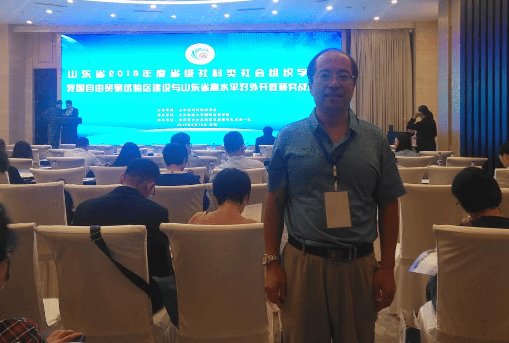 2019年9月19日,经济学院院长沈传河、副院长田玉丽、国贸教研室主任孙海洋参加在山东大厦财金厅举办的2019年山东省对外经济学会年会。