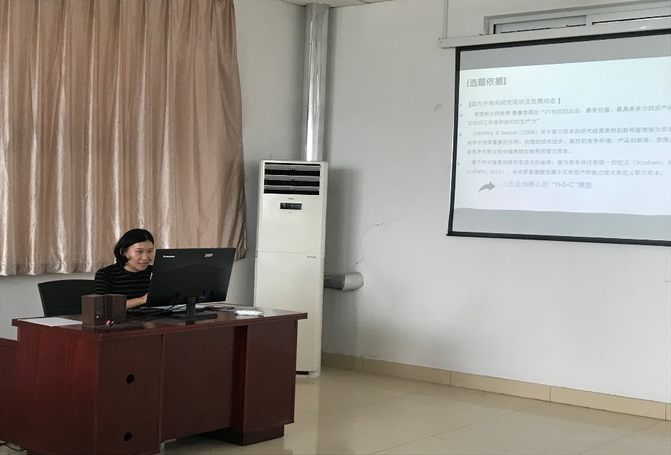 研讨会主要探讨的高水平项目为李众宜老师的课题《新贸易形势下我国制造业全球价值链攀升路径研究》和焦莉敏老师的课题《智力资本与企业绩效相关性研究》。曲教授对两位老师的课题从题目、思路、框架到创新之处、概念梳理都提出了详细的指导意见。参会的各位老师也积极发表自己的观点和见解,会议现场气氛热烈。
