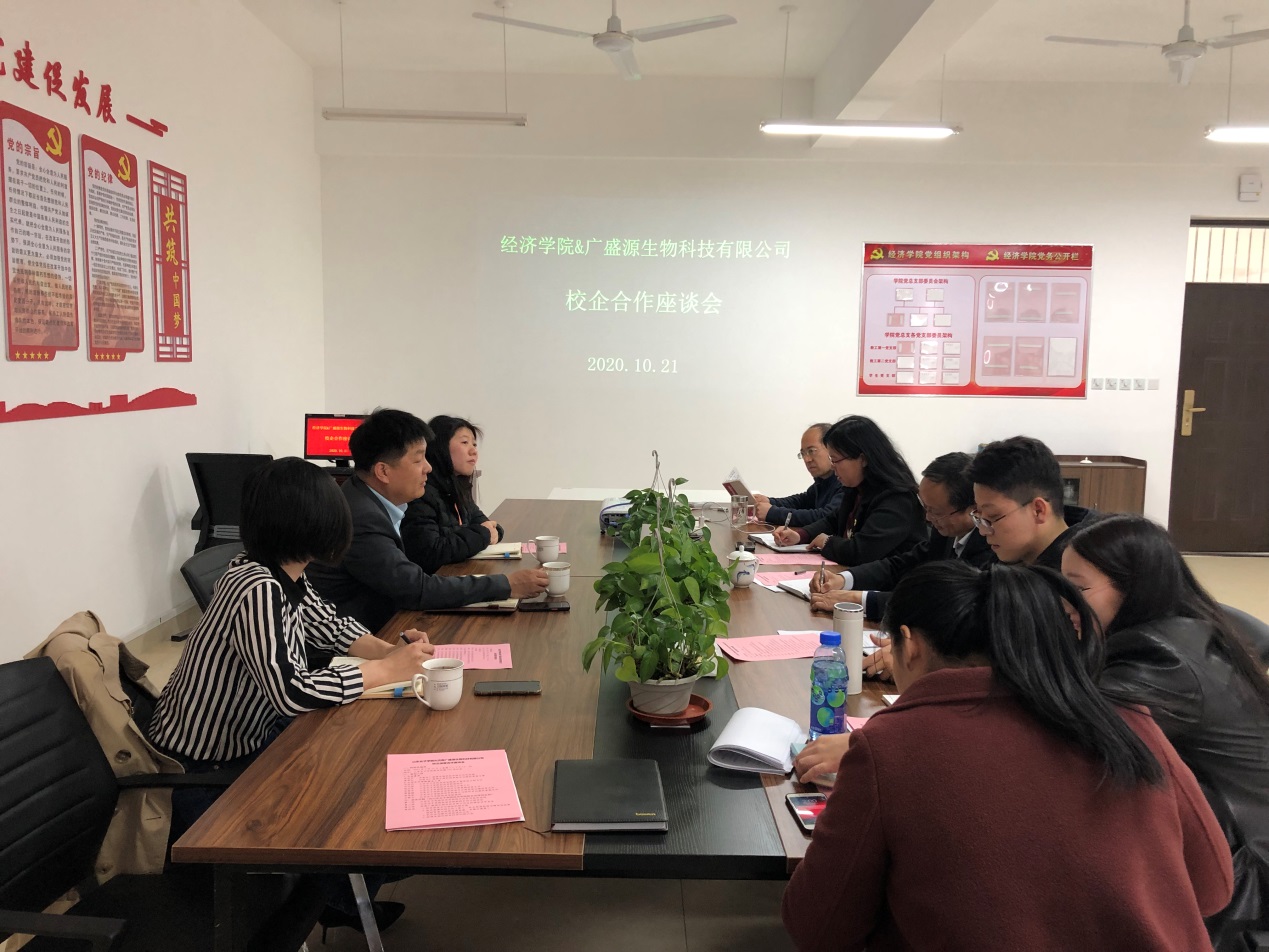2021年3月24日下午14:00,山东女子学院与济南广盛源生物科技有限公司召开了校企深度合作座谈会,济南广盛源生物科技有限公司总经理林洪军一行及学校经济学院院长沈传河、副院长田玉丽、办公室主任张太乐、国贸教研室主任孙海洋、报关与国际货运教研室主任霍媛媛、报关与国际货运教研室副主任张欣欣、经济学院教师王新月参加此次会议。