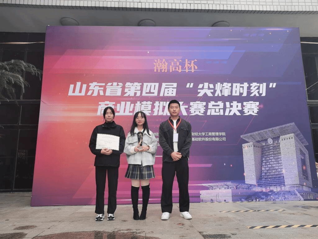 10月29-31日,“瀚高杯”山东省第四届“尖烽时刻”商业模拟大赛总决赛在山东财经大学举行。经过激烈角逐,我校经济学院由牛建国、周红云老师指导,由王敏倩、郭晓黎、杨振组成的“聚鑫”团队荣获团体二等奖。