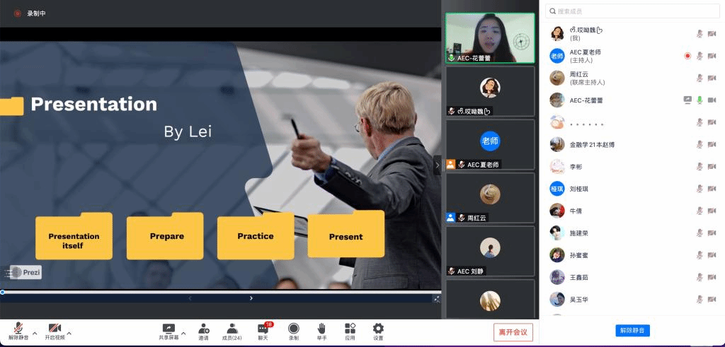 本次活动吸引了来自国际经济与贸易、金融工程两个专业近60人参与。在适应英语节奏后,同学们积极参与,虽是线上沟通,但同学们与主讲老师进行课堂互动的热情不减,成果展示环节,同学们踊跃发言,准确完整的完成最后的Presentation环节,收到主讲老师Lei Hua的赞扬。由于课堂氛围良好,课程在原定的授课时间上一再延长,同学们收获满满。(周红云)