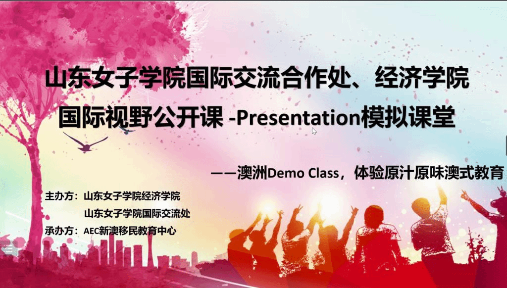 5月13日下午,为拓展学生国际视野,增加学生对外交流机会,在国际交流合作处的大力支持下,经济学院举办线上“国际视野公开课Demo Class”活动。活动邀请澳洲AEC college王牌教师Lei Hua与学生进行交流。