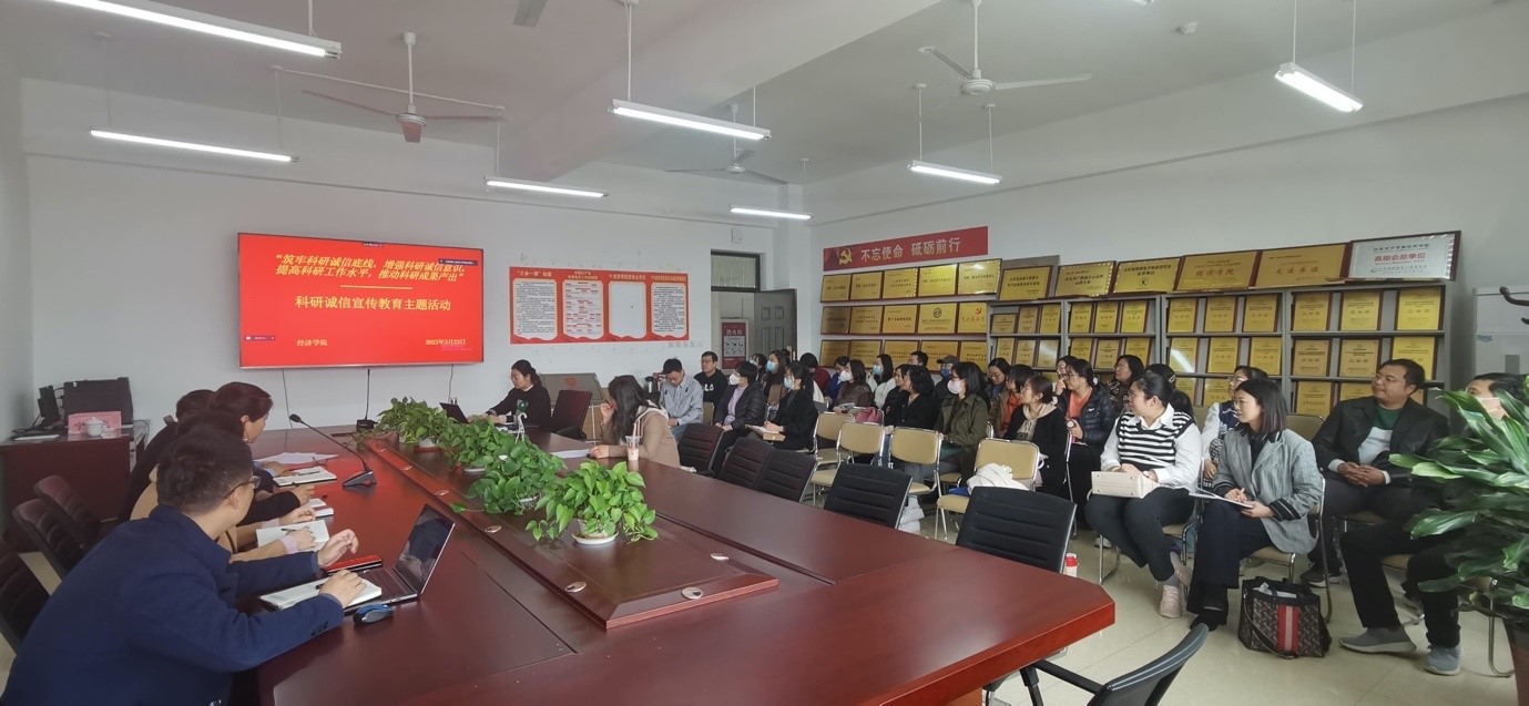 2023年3月23日下午,经济学院组织全体教职工开展了科研诚信宣传教育主题会。科研诚信是科技创新的基石,是建设创新型国家、实现高水平科技自立自强的重要前提和保障,也是科技工作者勇攀科学高峰承担的首要任务和使命。