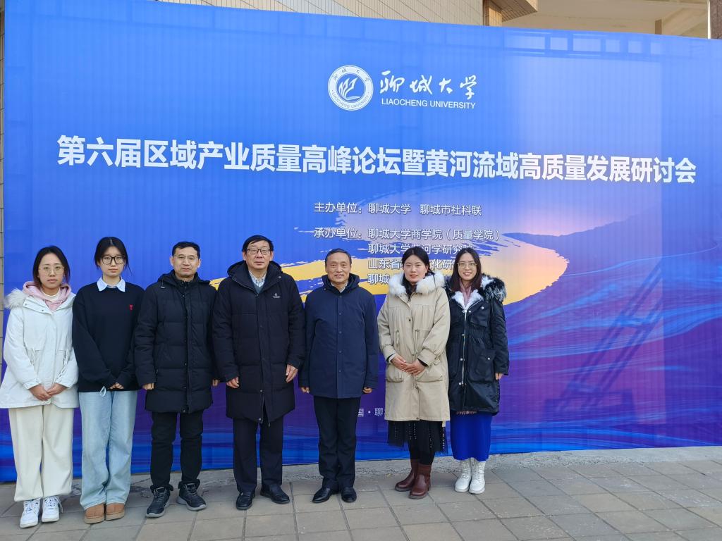 2023年12岳24日,第六届区域产业质量高峰论坛暨黄河流域高质量发展研讨会在聊城大学召开。经济学院院长沈传河、发展规划处处长刘中文、专业教师岳超教授、国际商务教研室主任周红云、何艺丛老师及两名研究生参加了会议。