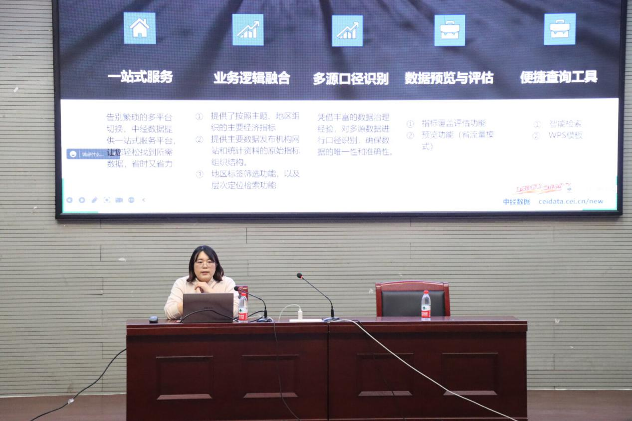 讲座中,薛老师以经济学院学生专业特点为切入点,结合学生所学习的统计学方法,通过对数据与数字的辨析和对统计学的阐释,使学生认识了数据分析的研究对象及其研究内容和范围,并对运用数据解决问题有了基本轮廓和初步认识。随后,通过展示多个中经数据的文本数据案例,深入浅出地为同学们讲解了数据在生活、学习、科研中的应用,及如何有效地将经济社会各领域的统计数据整合为一体的、清晰的数据资源,帮助学生更好地提升学习水平和提高科研工作质量。