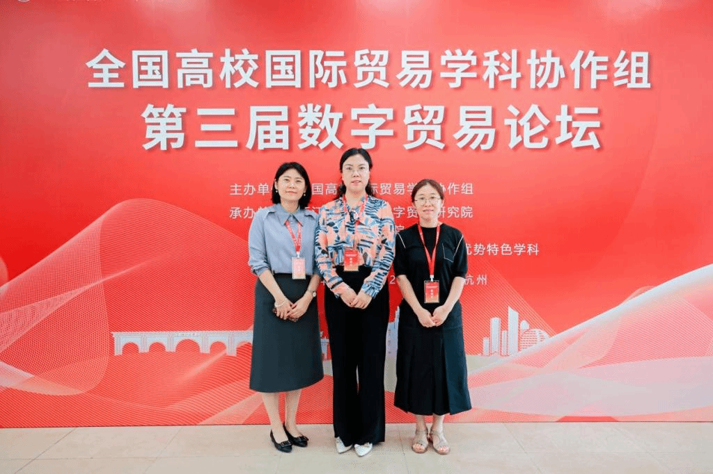 2025年6月20日至22日,全国高校国际贸易学科协作组第三届数字贸易论坛在杭州召开,本次论坛由全国高校国际贸易学科协作组、浙江大学中国数字贸易研究院与浙江大学经济学院联合举办。山东女子学院教务处副处长田玉丽、经济学院国际经济与贸易教研室教师代表赵蕾、王素芬受邀参加此次学术论坛。