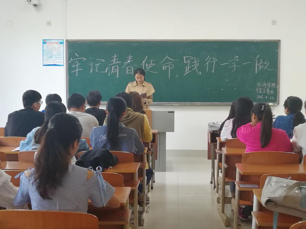 2018年4月12日,经济学院17级金融工程普本班在博学楼114召开“牢记青春使命,践行一学一做”主题班会,全体同学出席此次班会。