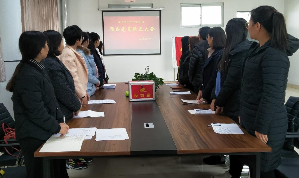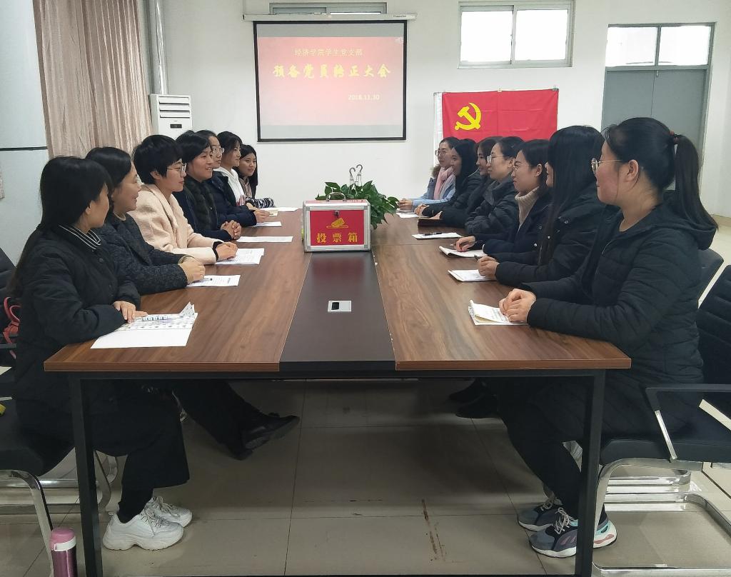 11月30日,经济学院学生党支部在图书馆B座401会议室召开预备党员转正大会。经济学院党总支副书记齐振花,学生党支部全体成员共同参加会议,本次会议由学生党支部书记公铭主持。