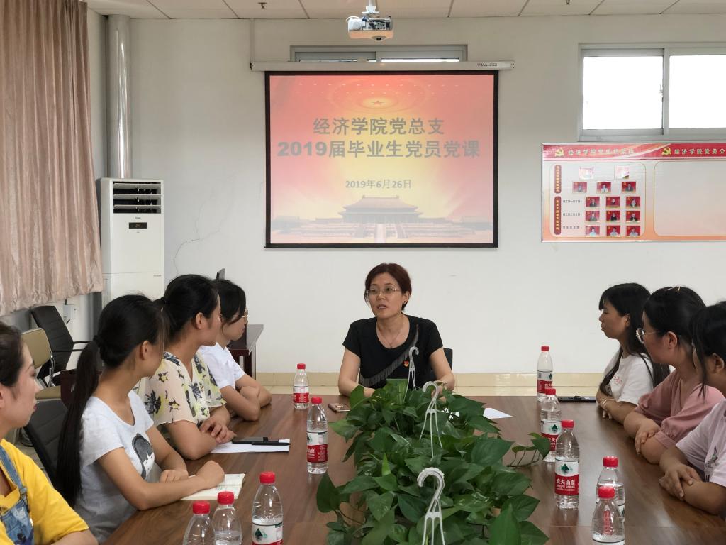 为加强毕业生党员教育,强化毕业生党员意识,引导和鼓励广大毕业生党员坚定理想信念,以饱满的热情和昂扬的斗志投身社会。6月26日上午,经济学院党总支书记张农同志在图书馆B401会议室,为即将离校的毕业生党员上“离校前最后一堂党课”。