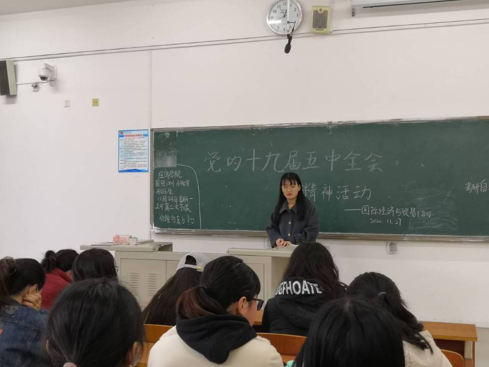 为进一步准确把握会议精髓要义、科学内涵,2020年11月23日,经济学院团总支以学习宣传贯彻党的十九届五中全会精神为主题,各团支部为主要载体,开展了形式多样、丰富多彩的主题学习活动。通过组织理论学习、宣传宣讲、召开主题团日等形式,从认识一个重大会议、领会一个重大判断、锚定一个重大目标、把握一个重大主题、贯彻一个重大战略、管好一个重大课题等六个方面为抓手,着重宣传十九届五中全会精神,引导经院师生自觉用全会精神武装头脑、指导实践,确保全会精神落地生根,迅速在我院内形成了青年热学、热议全会精神的浓厚氛围。