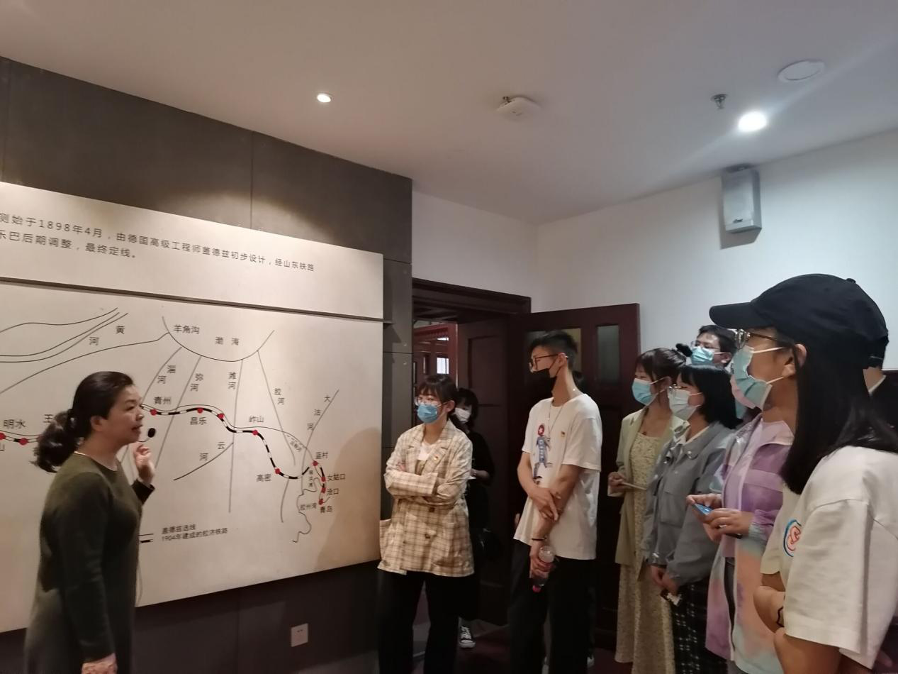 在胶济铁路博物馆讲解员的引导下大家先后参观了风雨沧桑路、走过百年等八个展厅。镇馆古楼,机车器件,三材轨道等展品讲述着中国铁路艰辛困苦的发展历程和百折不挠的进取精神。大家体会到胶济铁路本身所蕴含的“开放包容、执著进取”的坚韧品格,学习到了老一辈不屈不挠、顽强抗争的优良品质。