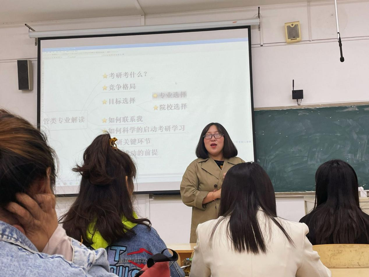 为贯彻落实党史教育学习“我为群众办实事”实践活动,帮助2019级本科和2021级专升本考研学子合理选择院校,科学备考,经济学院于10月5日晚上在博文楼407举办“我为群众办实事”——考研院校专业选择指导讲座。本次讲座邀请考研辅导专家胡强老师主讲,2022届有意向考研的学生参加本次讲座。