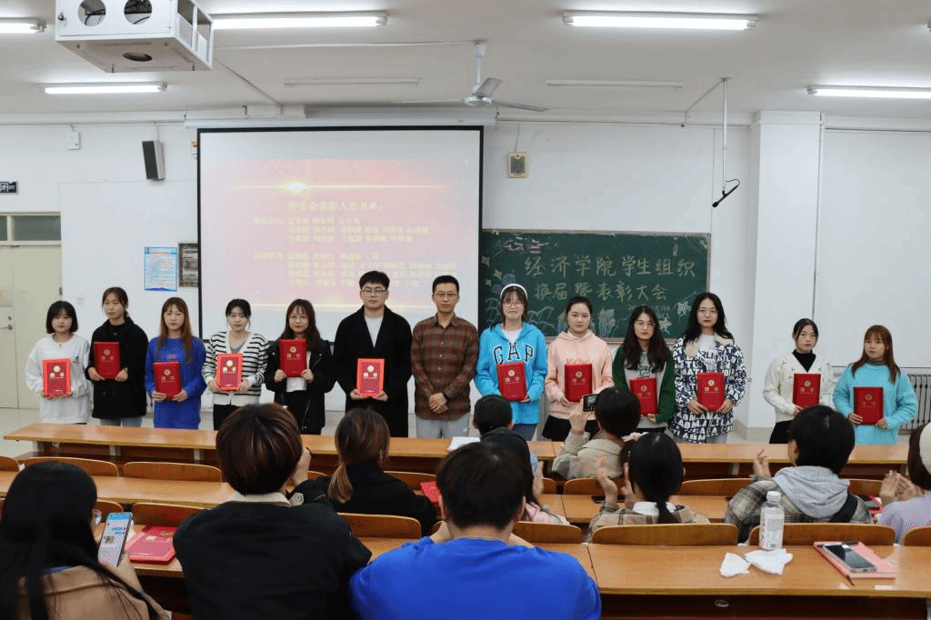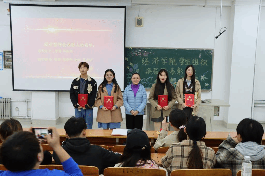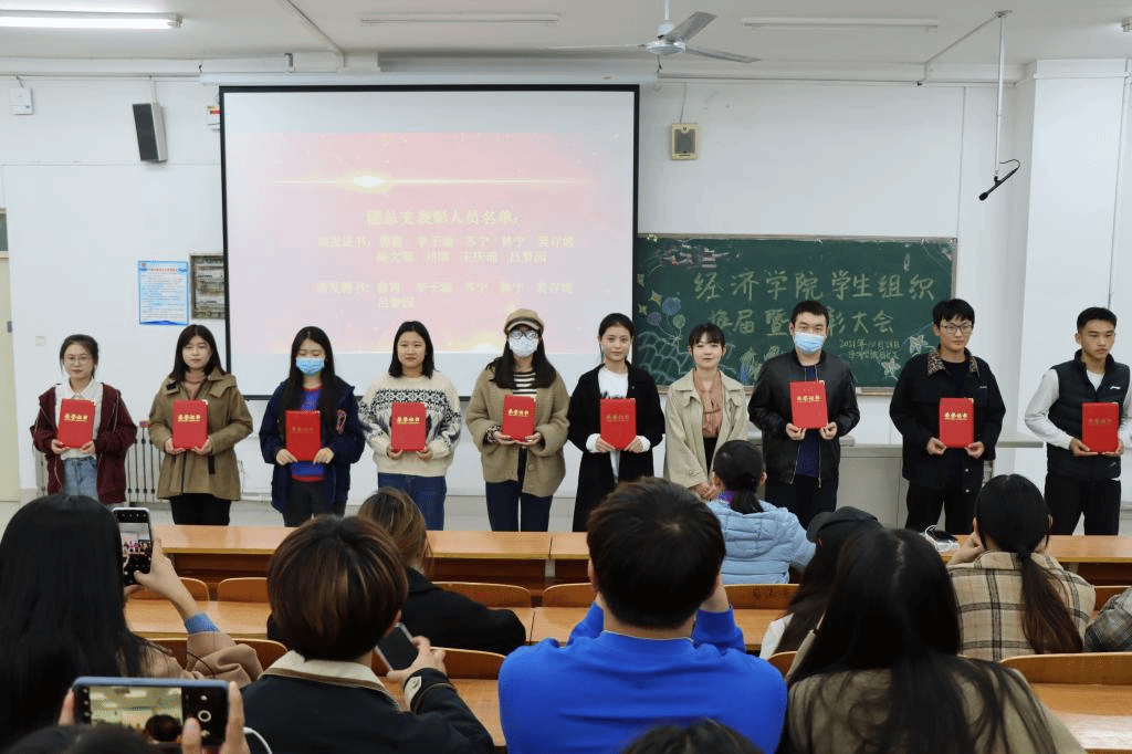 会议伊始,杨老师回顾了上一届学生组织的工作成绩,并对此给予了肯定,感谢他们的努力与付出。接着,赵书记、戴老师、杨老师分别为上届三大学生组织优秀成员颁发荣誉证书,为为本届学生干部颁发聘书,并表示希望学生干部们可以在已经取得的工作成绩上,继续努力,推动学院学生工作取得更好的成绩。最后,由赵书记作重要发言,她指出学生组织是锻炼学生综合能力的优秀平台,希望全体成员珍惜机会,认真完成工作任务;学会管理时间,做到工作与学习兼顾,成长为优秀的社会主义接班人。同学们纷纷表示必将牢记服务学生的使命,把精神落实在行动中,为经济学院的发展作出更大贡献。