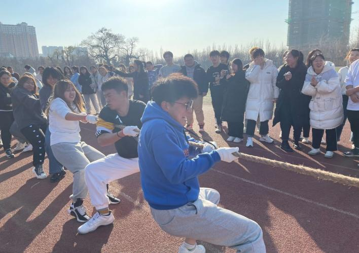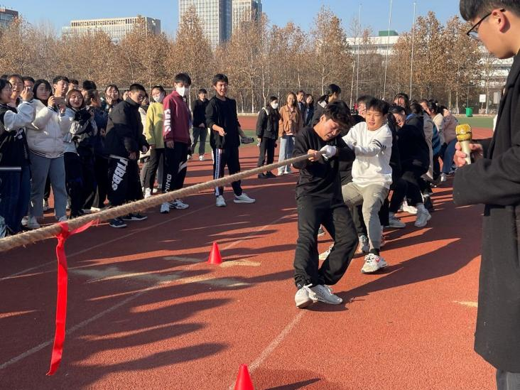 活动伊始,裁判员带领参赛人员进行了热身活动,并详细讲解了比赛规则。比赛中,参赛队员们个个斗志昂扬,充满了青春热情,随着绳子中间的红绸来回地移动,场外同学们的加油呼喊声此起彼伏,整个场面紧张而热烈。