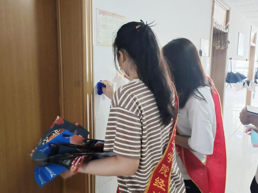 活动开始,同学们集合完毕后,活动负责人发放了小刀、消毒喷雾、抹布、小铲子等清洁工具,并分配了清扫任务。春光乍暖,同学们奔跑在校园的各个角落,来到贴满小广告的墙面,用喷除胶剂涂抹到墙壁上,待粘胶软化后用铲子进行了更为细致的清理。接着,同学们前往宿舍门口、楼道走廊等公共区域喷洒酒精,进行了全面、细致的消毒。艳阳高照,他们行走在每一层走廊、每一个楼道,汗水早已浸透了衣服,整个消毒工作紧张有序,志愿者的辛苦工劳动为筑牢学院疫情防控安全防线奠定坚实的基础。