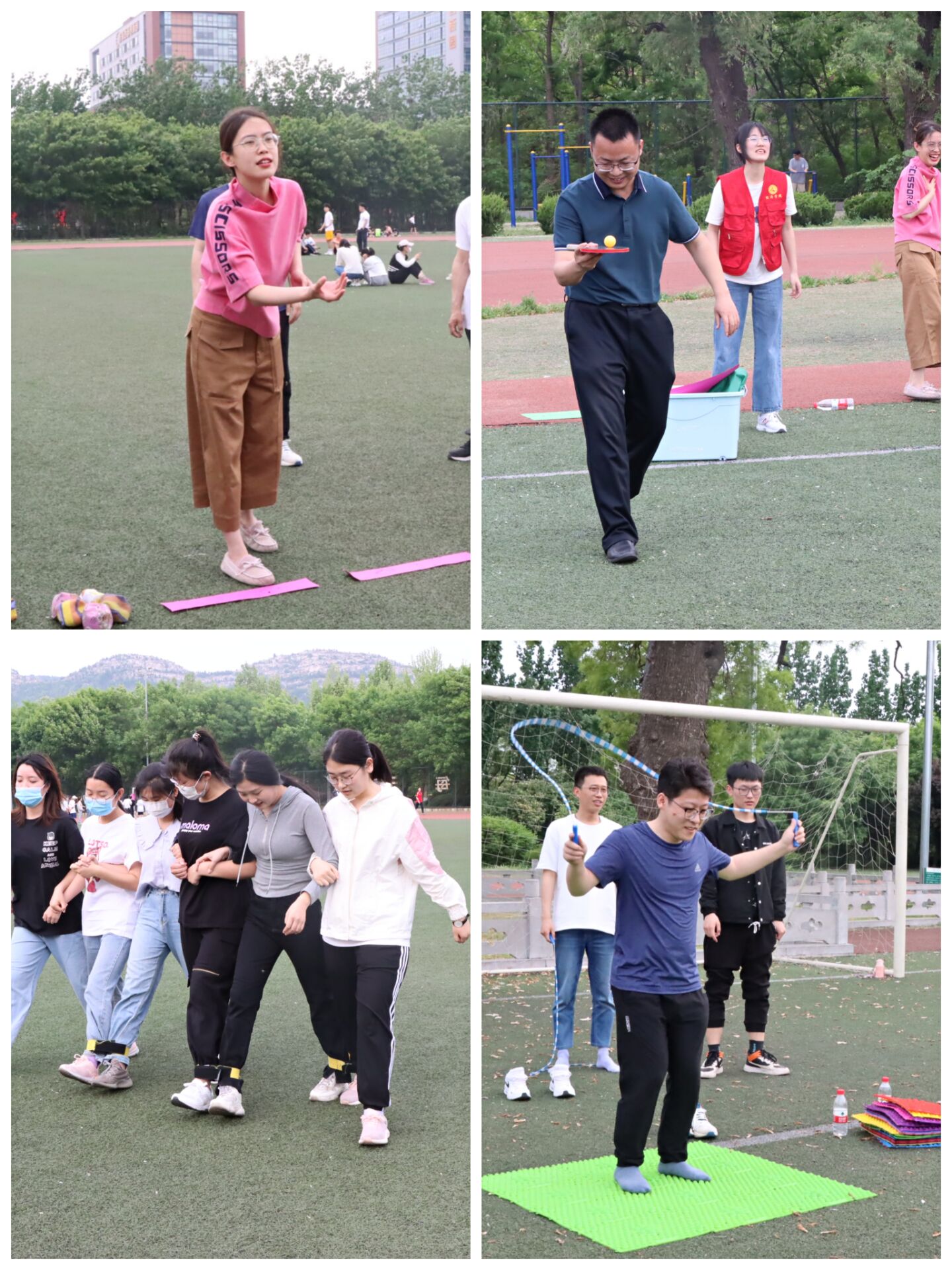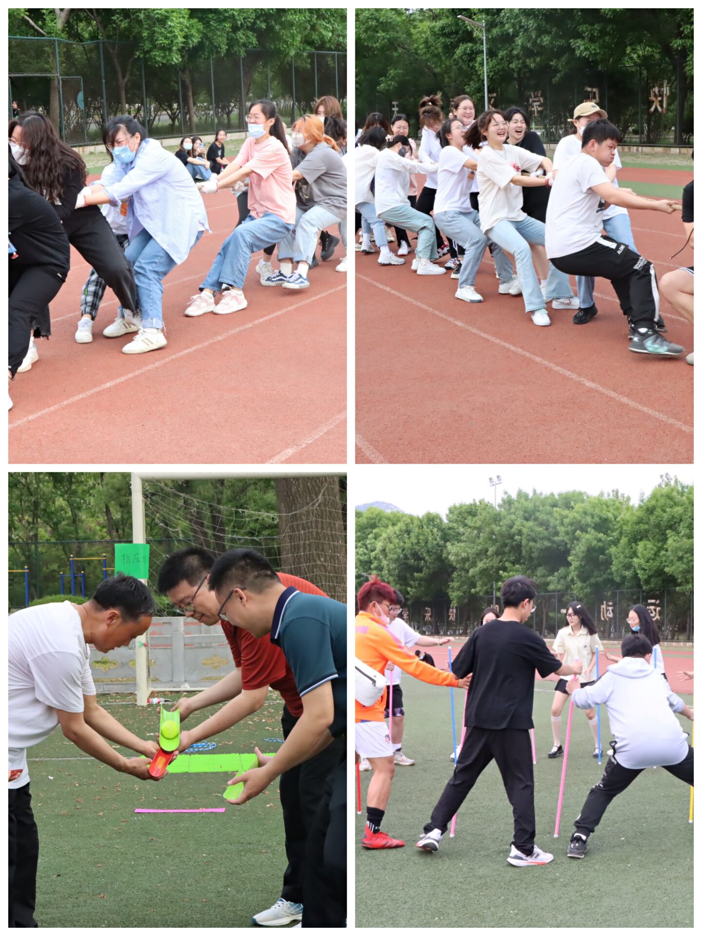 “经”彩玩不够。根据学校疫情防控要求,活动参与人员在志愿者的引导下分组比赛,有序参与活动,避免人员大量聚集。按照本次活动内容,老师与学生共同完成了“扔沙包”、“拔河”、“六人七足”、“老鹰捉小鸡”、“指压板”等七大项目,大家全情投入,群策群力,互助互信,积极沟通,充分发挥了团队协作精神。比赛是竞争的游戏,更是友谊的联赛。在“指压板”游戏中,参与者在指压板上跳数次跳绳后,由他人再进行小球传送,接力到达终点。同学们齐心协力,相互配合,在欢笑中追逐,现场气氛欢乐轻快。