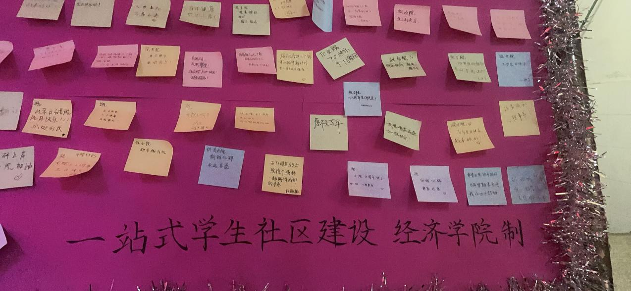 为庆祝学校70周年华诞、增强学生的爱校荣校意识,进一步推进“一站式”学生社区建设,学校建校70周年校庆期间,经济学院于学生社区1号公寓开展“我为女院献祝福”手写心愿墙活动。