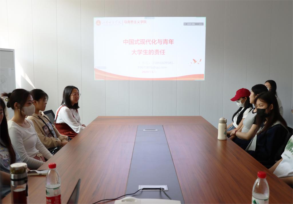 为增强当代青年学子对中国式现代化建设的使命担当,引导其树立正确的人生观和价值观。5月24日下午两点,经济学院特邀马克思主义学院党总支书记王永泉教授在1、2号公寓连廊大学生事务中心一楼会议室组织召开《中国式现代化与青年大学生的责任》主题宣讲活动,经济学院2022级辅导员张艳丽老师出席此次活动,经济学院10名入党积极分子参与此次宣讲活动。