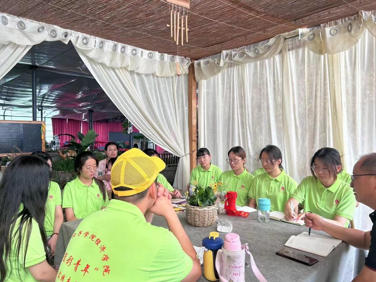 在实践期间老师邀请了山庄的负责人之一和我们进行了学习交流,我们指导老师很想知道她是怎么决定将自己的一生放在农业劳动上,我记得她说:“包下这座山头,我也和这里建立起了联系。我也想借助自己的能力和政府一起为乡村振兴做些贡献。”我才知道一个人在哪里都会有一番天地,只要他肯努力。她也是一路跌跌撞撞的走来,山庄刚开始的一草一木都是由他们亲手搭建的、亲自冒着大雨将小树苗固定好。现在沃泉山庄已经通过它自己的努力,能够带动村民就业、提升经济。