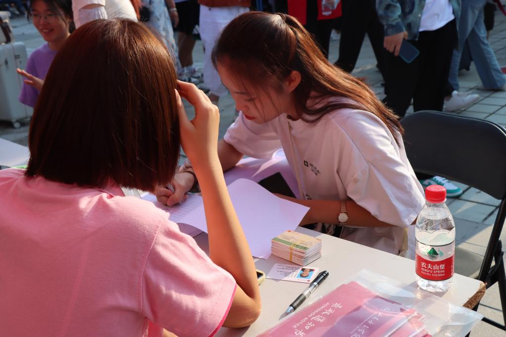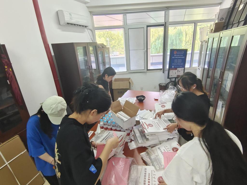 前期准备工作中,党员们齐心协力,为新生精心包装开学大礼包,其中包括贴有“经济学院欢迎你”标签的新生资料袋、经济学院特定钥匙扣,矿泉水等,彰显经院温度。同时,我院学生党员成为助理班主任,为23级专升本新生答疑解惑,帮助新生党员高效完成信息填报,为迎新工作做好了充足准备,切实展现出“‘经新’准备,以心迎新”的服务理念。