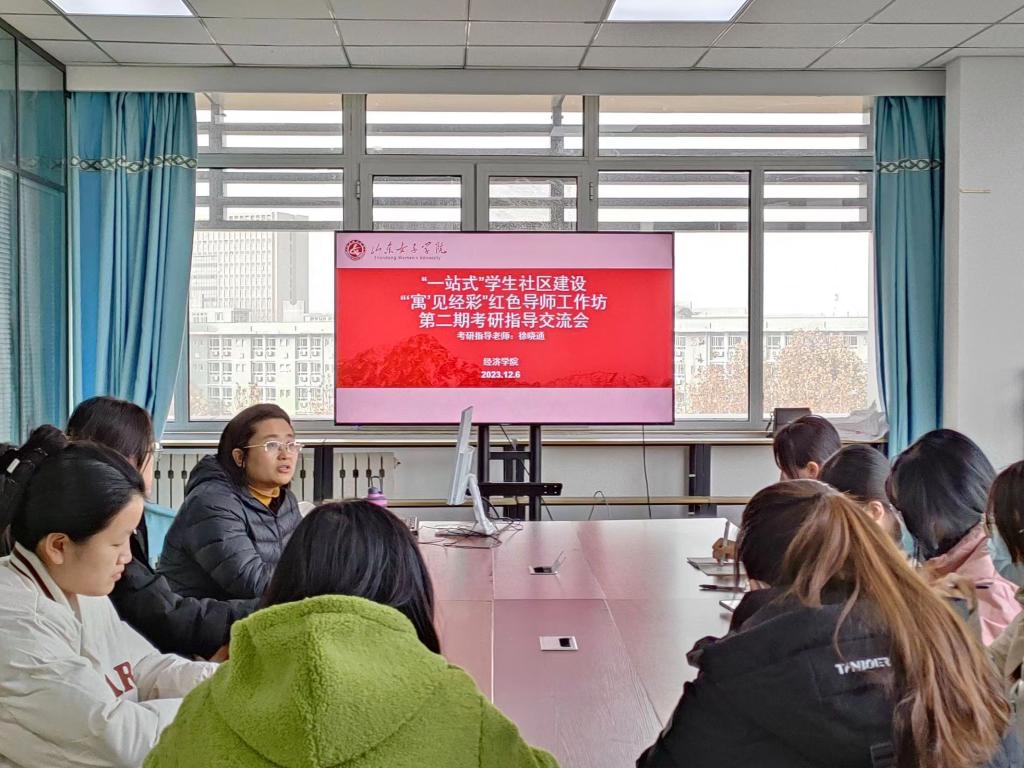 12月6日下午,经济学院在求真楼514实验室举办“一站式”学生社区建设“‘寓’见经彩”红色导师工作坊第二期考研指导交流会。会议由考研导师徐晓通老师主讲,部分大三投资学专业的学生参加此次考研指导交流会。
