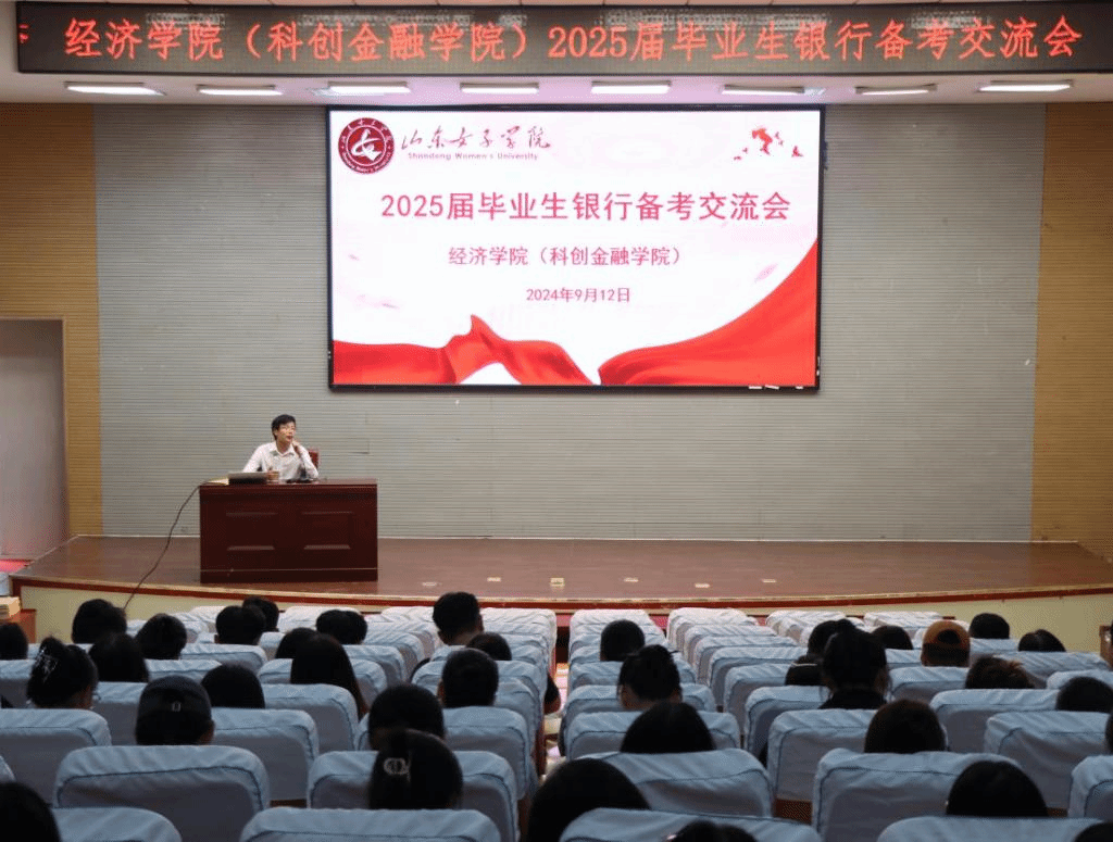 为了增加同学们对银行校园招聘流程及备考的了解,经济学院于2024年9月12日下午3:00在图书馆一楼报告厅举办了2025届毕业生银行备考交流会。会议邀请智仕教育研究院负责人王夏兵主讲,辅导员张倩倩老师主持,2025届全体金融相关专业毕业生参会。