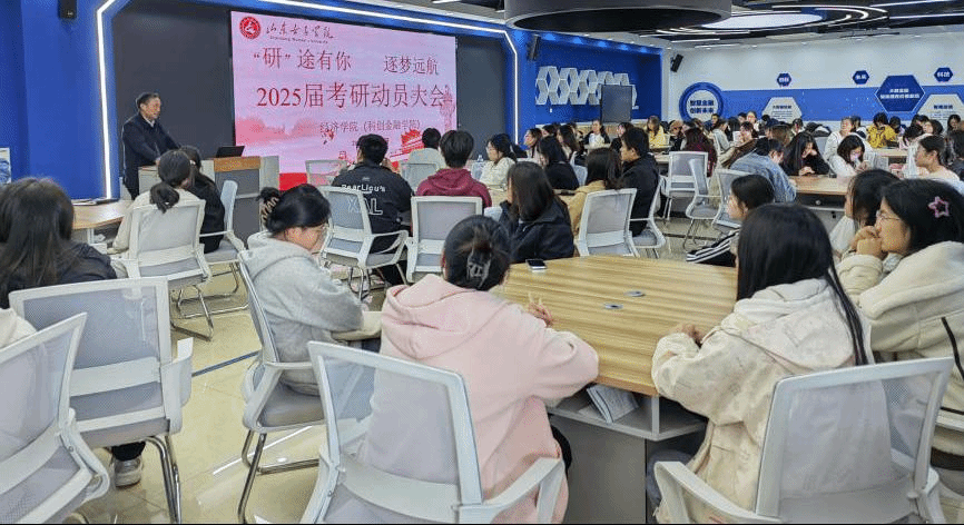 为帮助考研学子明确考研目标,激发考研斗志,经济学院于2024年10月24日下午,在求真楼511举办“‘研’途有你,逐梦远航”2025届学生考研动员大会。学院党总支书记齐振花、党总支副书记、院长沈传河、考研导师张欣欣、就业联络员郝兰霞,以及2025届全体考研学生和2026届有考研意向的同学参加会议。会议由学院党总支副书记赵晓琳主持。