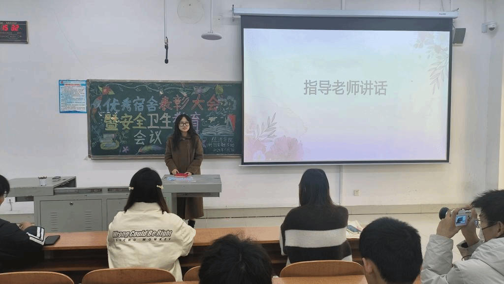 本次会议围绕优秀宿舍表彰和安全卫生两大主题。一批批宿舍表现优异的学生脱颖而出,他们遵守安全管理规定,维护宿舍卫生整洁,为全院宿舍树立了标杆。各优秀宿舍舍长以营造积极向上的宿舍生活环境为切入点,分享了自己宿舍在保持卫生、确保安全方面的经验和做法,赢得了现场阵阵掌声。生活部副部长杨博围绕安全卫生教育,向学生们介绍了宿舍安全隐患的种类和防范措施,以及卫生习惯的养成方法。最后,张倩倩老师结合公寓安全、消防安全、财产安全等与学生紧密相关的安全事项进行重点强调,真正将宿舍和安全教育融入学生之中。