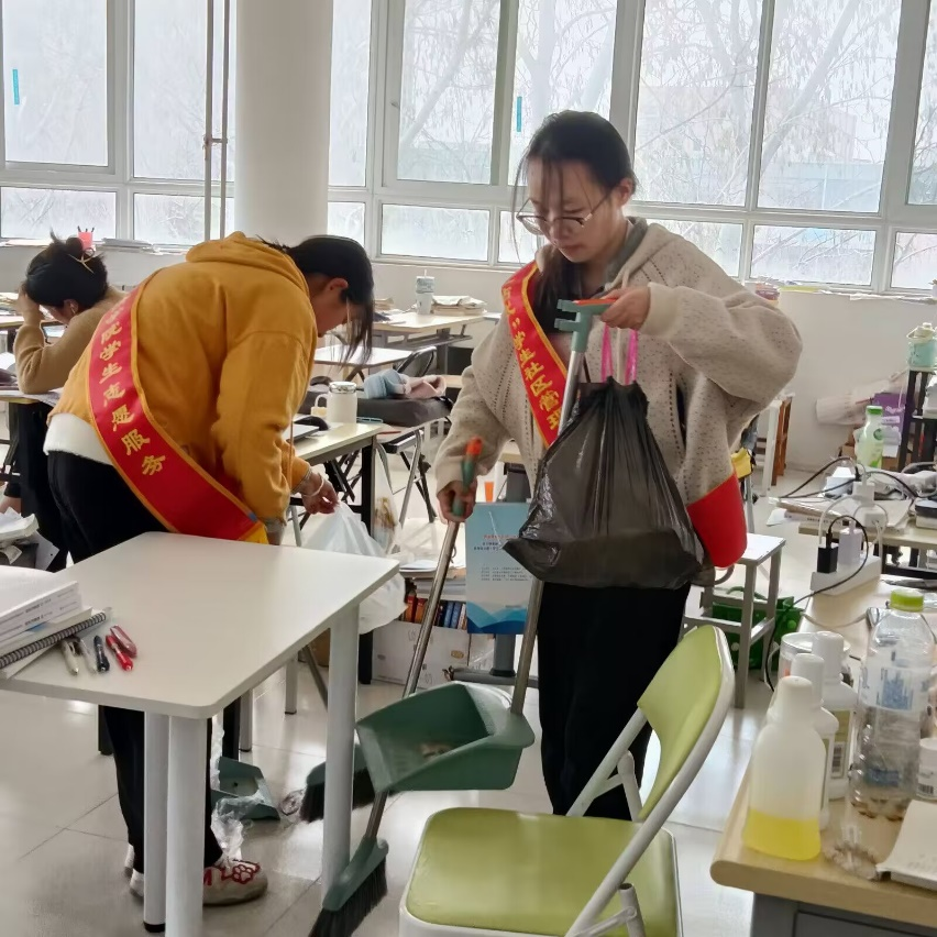 活动当天,志愿者们分为若干小组,各司其职,协同推进各项工作。她们分工明确,有的负责清扫地面,有的负责擦拭桌面,还有的负责整理书籍。整个活动过程有条不紊,大家相互配合,共同为创造一个整洁、舒适的学习环境而努力。