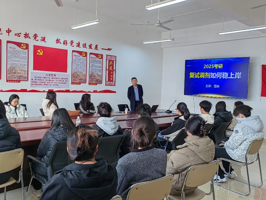 为提升学生考研复试成功率,山东女子学院经济学院于2025年3月6日上午在求真楼202举办了2025届考研复试指导会。本次会议特邀高联集团考研指导专家范林主讲,学院党委副书记赵晓琳主持,2025届全体考研过线同学参会。